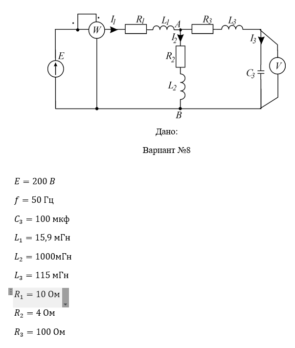 - Определить показания вольтметра и активную мощность, показываемую ваттметром.