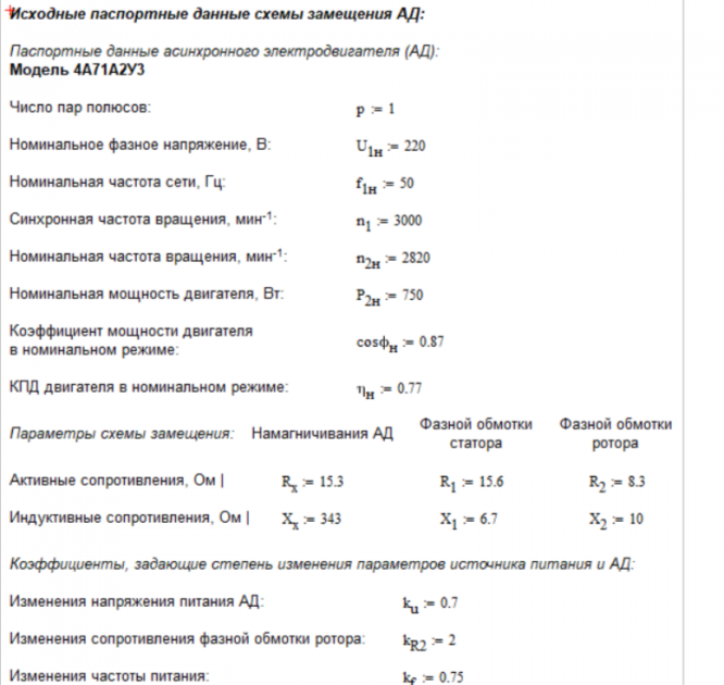 ДЗ 1: Расчет характеристик трехфазного асинхронного двигателя (Выполнено в MathCAD- универсальное для всех вариантов) вариант 2