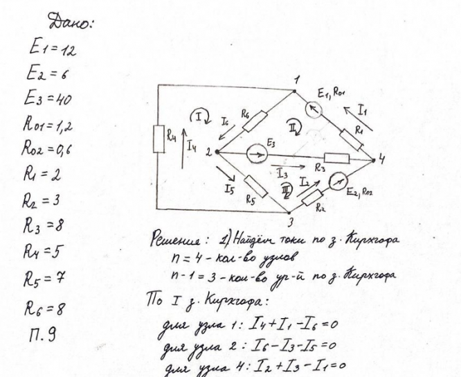 ДЗ 1: Расчет сложных линейных цепей постоянного тока вариант 9