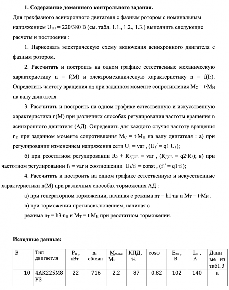 ДЗ 2: Расчет характеристик трехфазных асинхронных двигателей с фазным ротором вариант 10