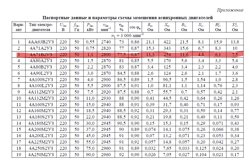 Расчет характеристик трехфазного асинхронного двигателя вариант 3