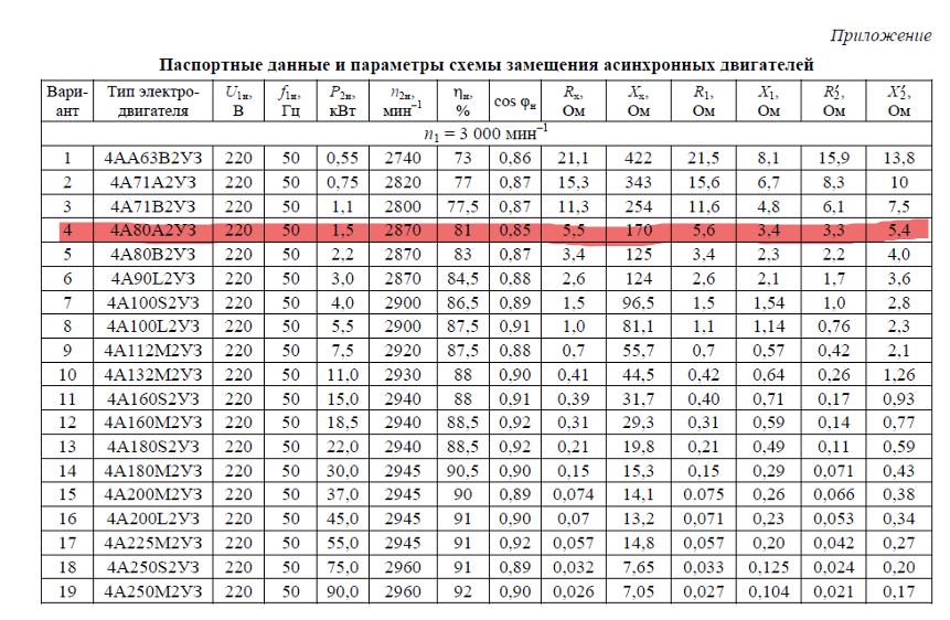 Расчет характеристик трехфазного асинхронного двигателя вариант 4