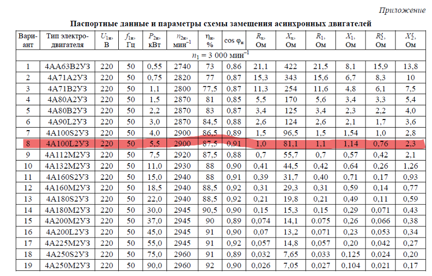 Расчет характеристик трехфазного асинхронного двигателя вариант 8