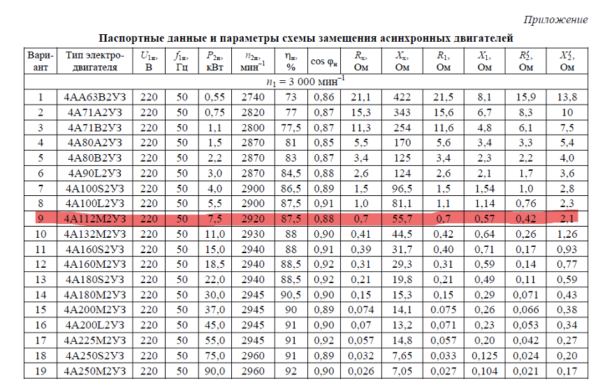 Расчет характеристик трехфазного асинхронного двигателя вариант 9