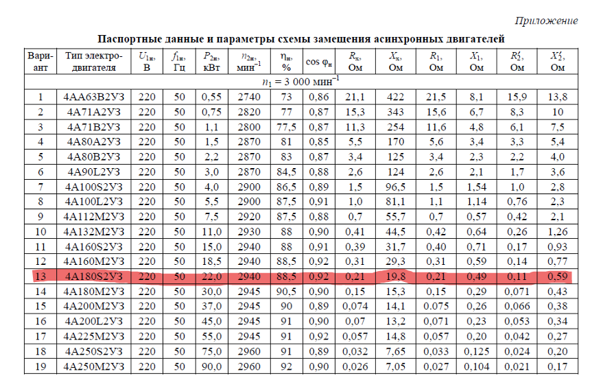 Расчет характеристик трехфазного асинхронного двигателя вариант 13