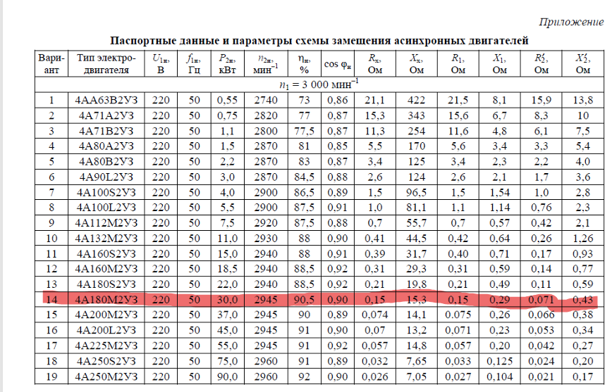 Расчет характеристик трехфазного асинхронного двигателя вариант 14