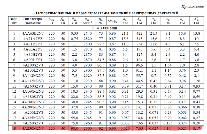Расчет характеристик трехфазного асинхронного двигателя вариант 19