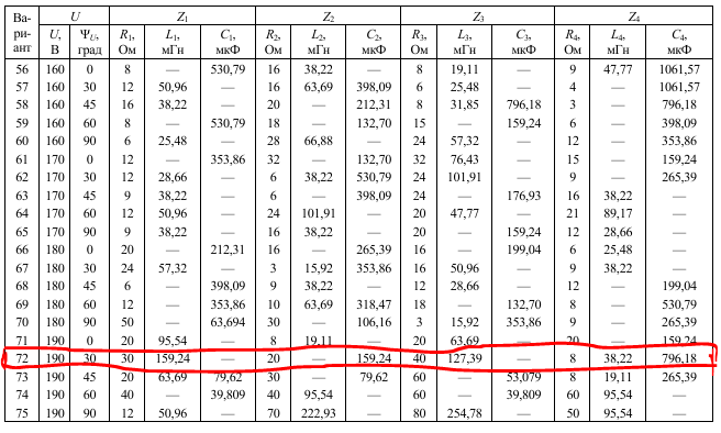 ДЗ 2: Расчет линейных цепей синусоидального тока вариант 72