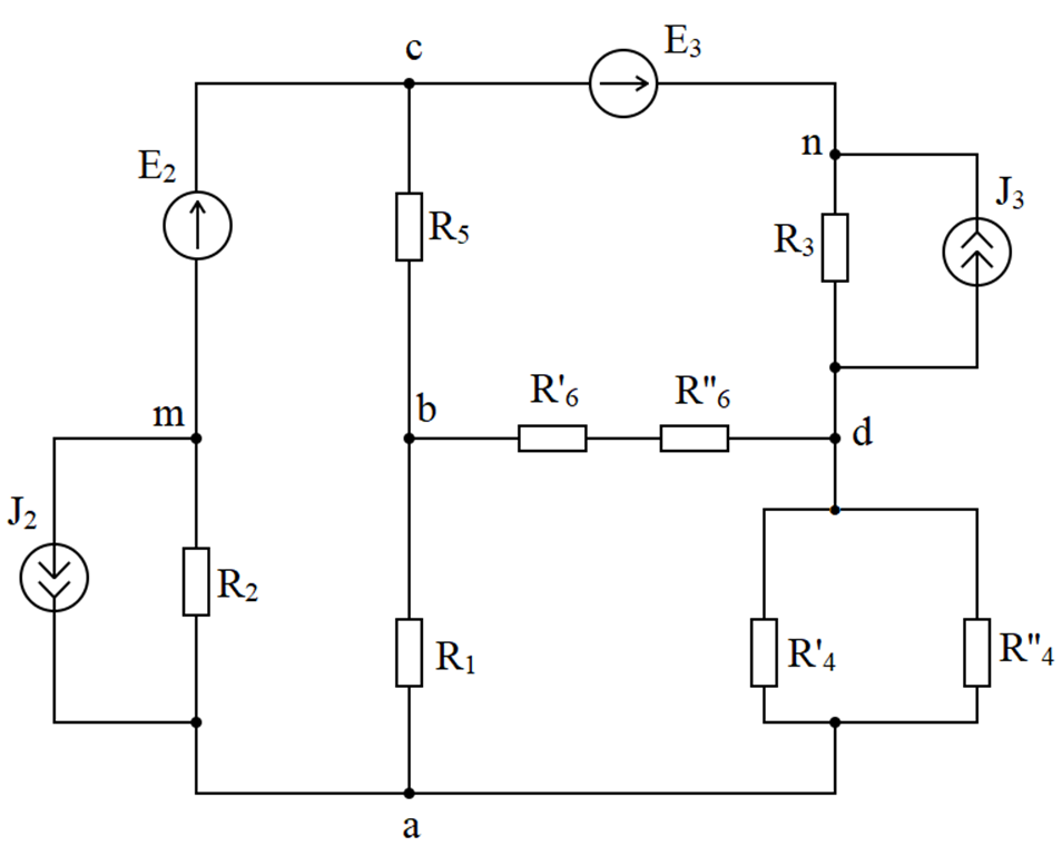 Заменить схемы замещения активных двухполюсников, содержащие идеальный источник тока и внутреннее сопротивление, схемами замещения, содержащими идеальный источник ЭДС и внутреннее сопротивление.