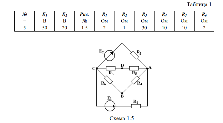 1. Для схемы электрической цепи, представленной на рис. 1.5 составить систему уравнений для определения токов в ветвях методом применения законов Кирхгофа.