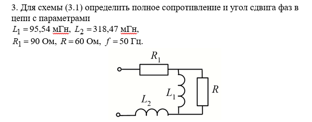 3. Для схемы (3.1) определить полное сопротивление и угол сдвига фаз в цепи с параметрами