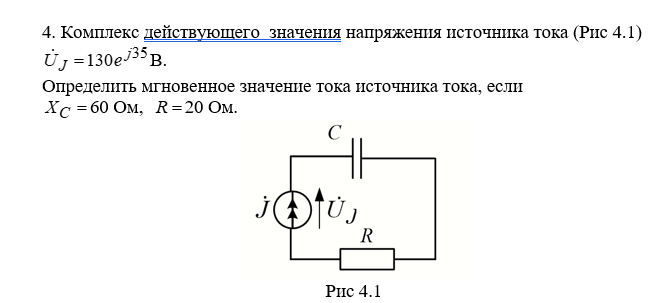 4. Комплекс действующего значения напряжения источника тока (Рис 4.1) В.