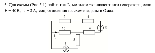 5. Для схемы (Рис 5.1) найти ток методом эквивалентного генератора, если сопротивления на схеме заданы в Омах.