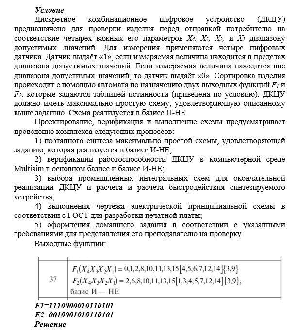 Главная » Учебные материалы » Электротехника (ЭлТех) » Домашние задания » МГТУ им. Н.Э.Баумана » 7 семестр » Номер 1 » Вариант 37 » Проектирование дискретного комбинационного цифрового устройства на интегральных микросхемах