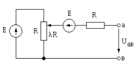 Задача 12. Определить напряжение Uав, если E = (N) B, R = (M) Ом,  = 0,5.