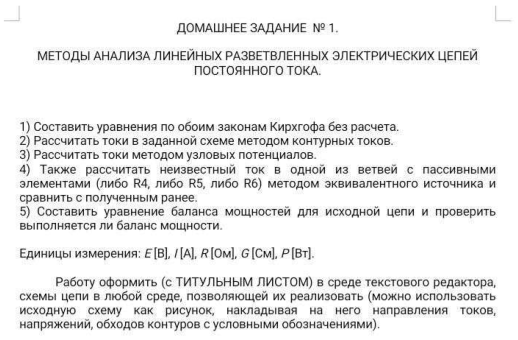 ДЗ 1 Методы анализа линейных разветвлённых электрических цепей постоянного тока