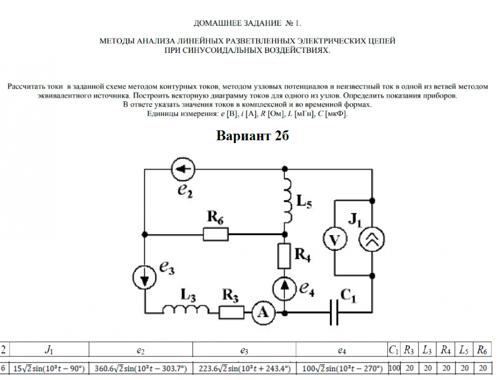 ДЗ 1: Методы анализа линейных разветвленных электрических цепей при синусоидальных воздействиях вариант 2