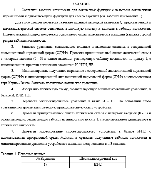 ДЗ: Вариант 17 - Проектирование комбинационного логического устройства цифровой электронной техники вариант 17