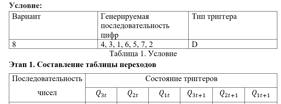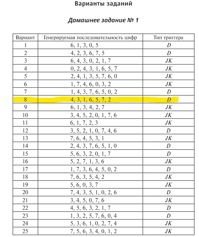 ДЗ2 на тему: "Синтез синхронного автомата на универсальных JK- и D- триггерах", принято Васильевым В. В. Набор цифр 4, 3, 1, 6, 5, 7, 2; Тип триггера: D