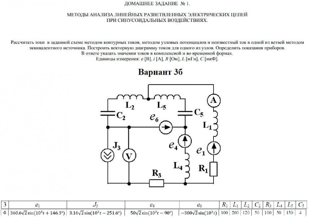 ДЗ 1: Методы анализа линейных разветвленных электрических цепей при синусоидальных воздействиях вариант 3