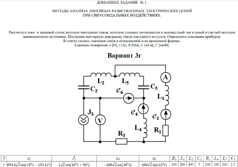 ДЗ 1: Методы анализа линейных разветвленных электрических цепей при синусоидальных воздействиях вариант 3