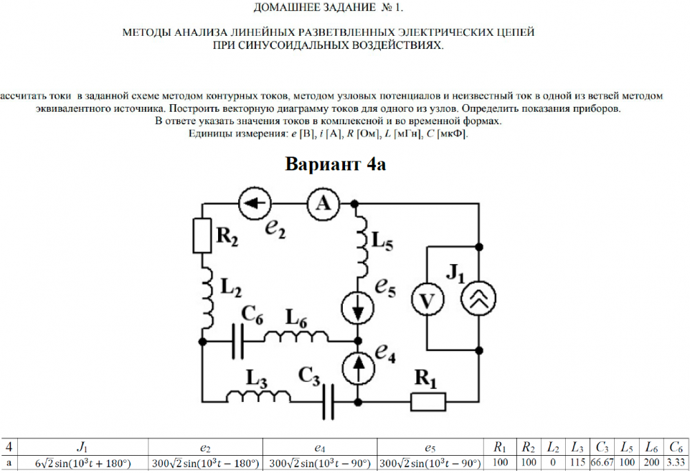 ДЗ 1: Методы анализа линейных разветвленных электрических цепей при синусоидальных воздействиях вариант 4