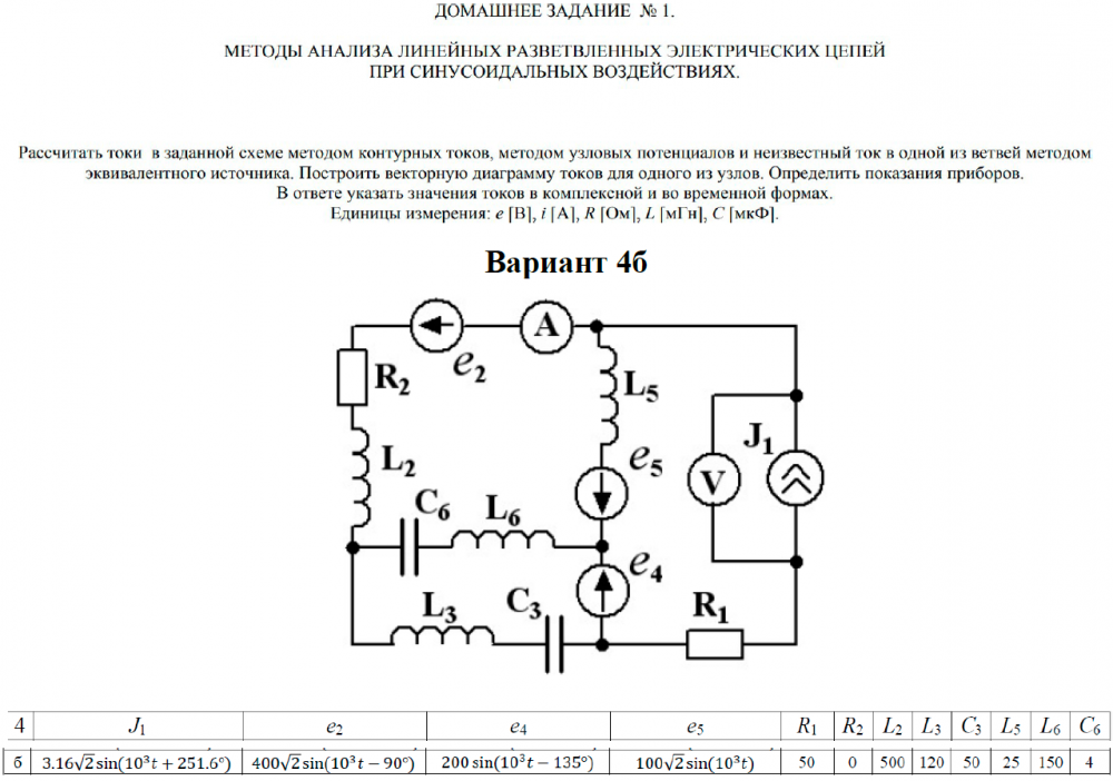 ДЗ 1: Методы анализа линейных разветвленных электрических цепей при синусоидальных воздействиях вариант 4