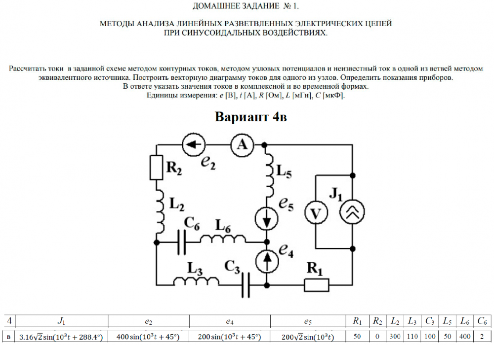 ДЗ 1: Методы анализа линейных разветвленных электрических цепей при синусоидальных воздействиях вариант 4