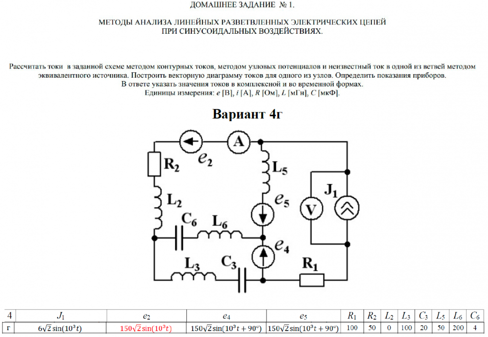 ДЗ 1: Методы анализа линейных разветвленных электрических цепей при синусоидальных воздействиях вариант 4