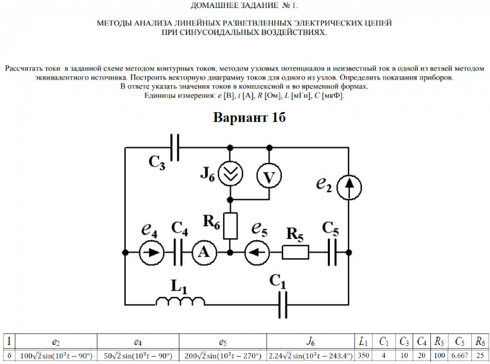 ДЗ 1: Методы анализа линейных разветвленных электрических цепей при синусоидальных воздействиях вариант 1