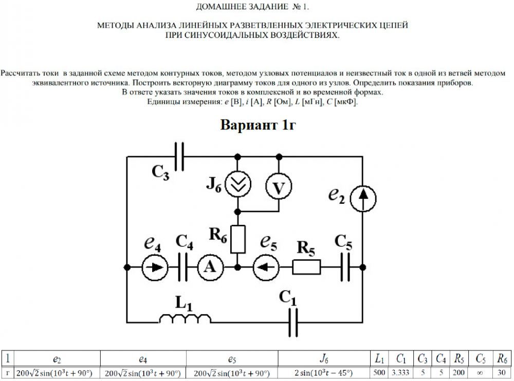 ДЗ 1: Методы анализа линейных разветвленных электрических цепей при синусоидальных воздействиях вариант 1