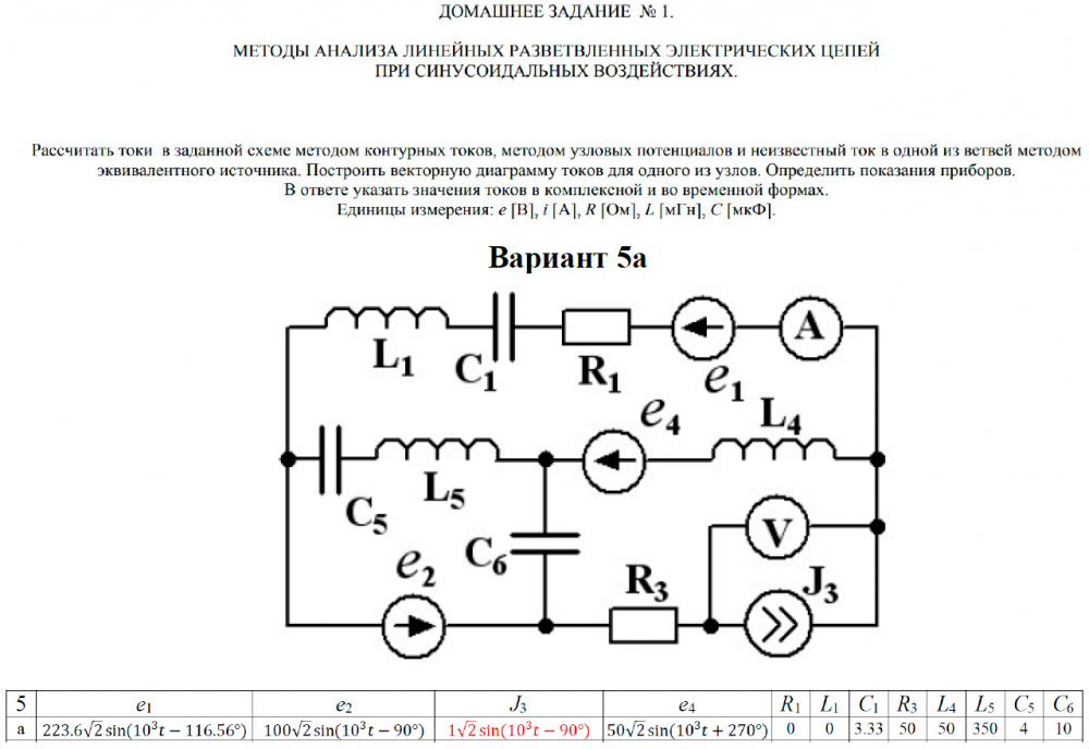 ДЗ 1: Методы анализа линейных разветвленных электрических цепей при синусоидальных воздействиях вариант 5
