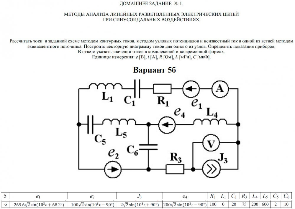 ДЗ 1: Методы анализа линейных разветвленных электрических цепей при синусоидальных воздействиях вариант 5