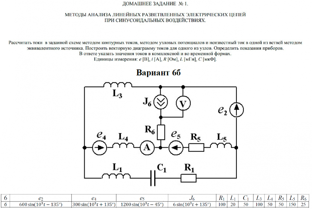 ДЗ 1: Методы анализа линейных разветвленных электрических цепей при синусоидальных воздействиях вариант 6