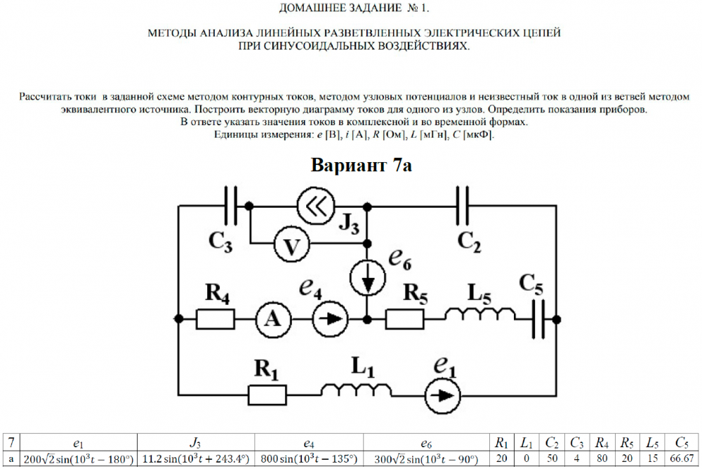 ДЗ 1: Методы анализа линейных разветвленных электрических цепей при синусоидальных воздействиях вариант 7