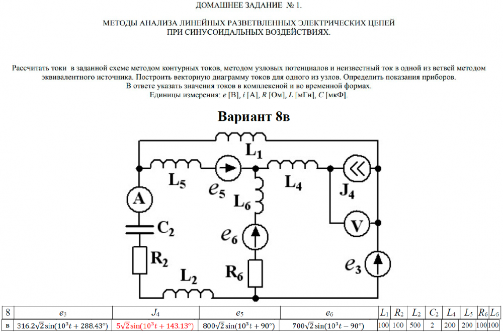 ДЗ 1: Методы анализа линейных разветвленных электрических цепей при синусоидальных воздействиях вариант 8