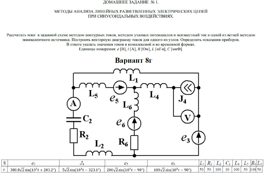 ДЗ 1: Методы анализа линейных разветвленных электрических цепей при синусоидальных воздействиях вариант 8