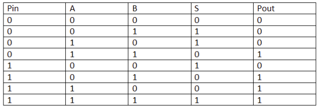 Полный одноразрядный сумматор имеет следующую таблицу истинности.
