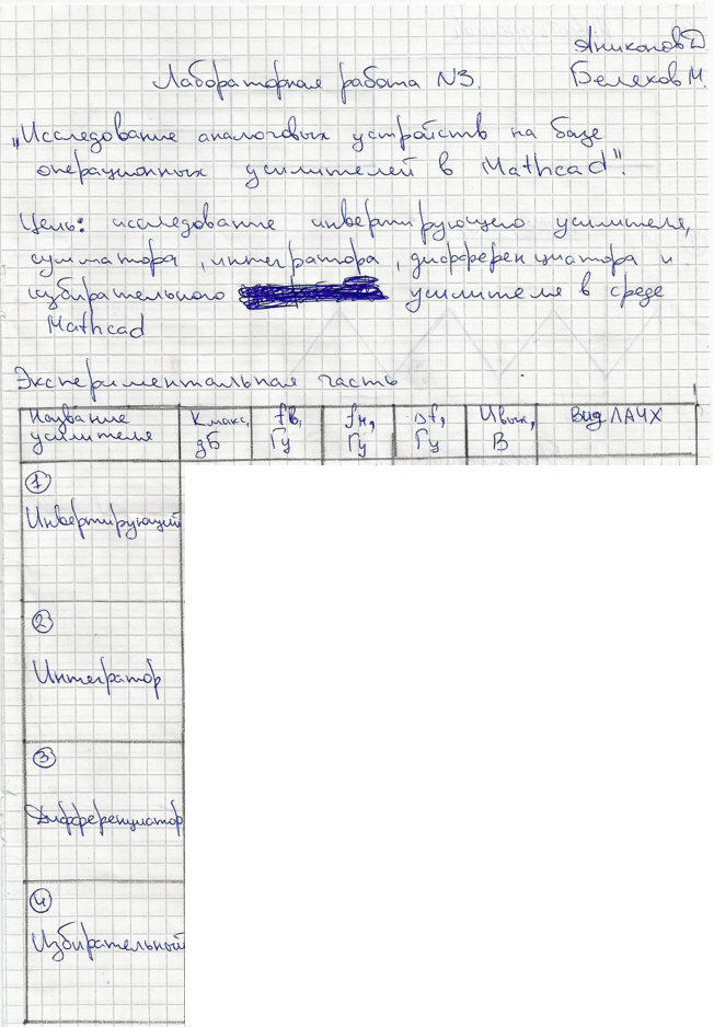 Для студентов МГТУ им. Н.Э.Баумана по предмету Электротехника (ЭлТех)Исследование аналоговых устройств на базе операционных усилителей в MathcadИсследование аналоговых устройств на базе операционных усилителей в Mathcad