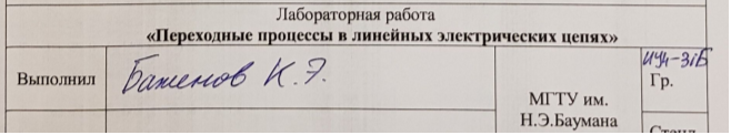 Для студентов МГТУ им. Н.Э.Баумана по предмету Электротехника (ЭлТех)Лаб. "Переходные процессы в линейных электрических цепях"Лаб. "Переходные процессы в линейных электрических цепях"