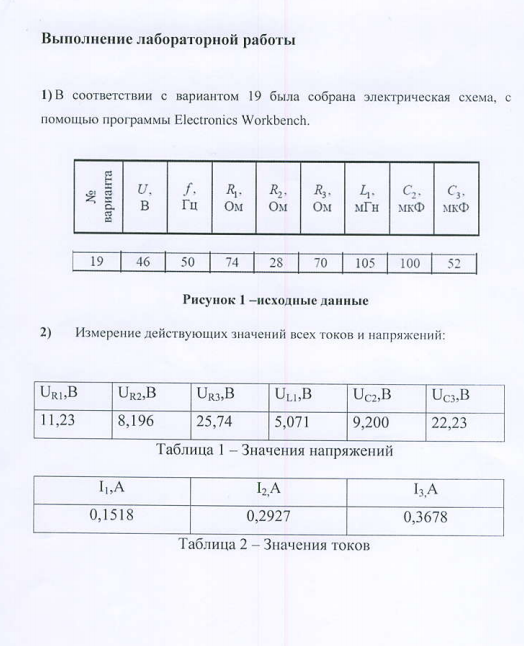 Лабораторная работа 3: Исследование электрических цепей синусоидального тока вариант 19