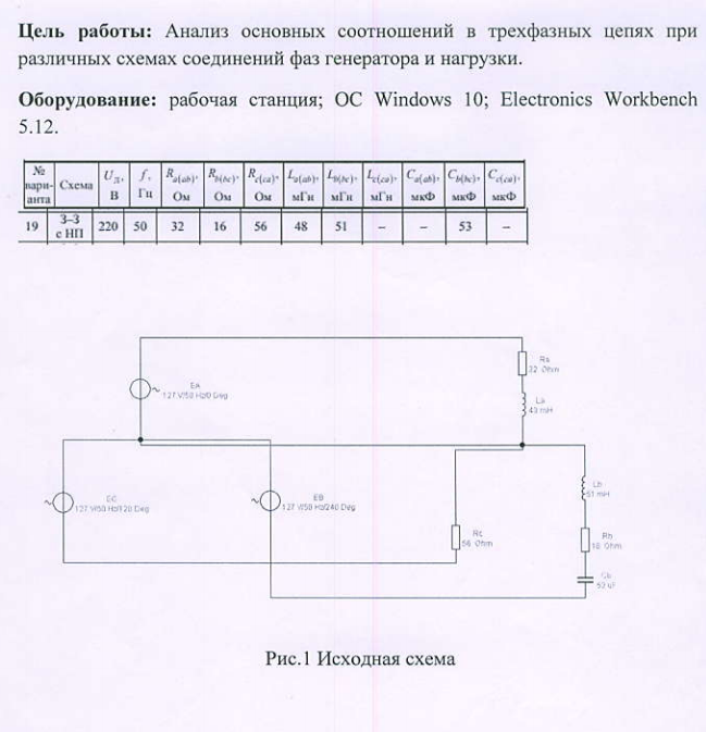 Лабораторная работа 4: Исследование трехфазных электрических цепей вариант 19