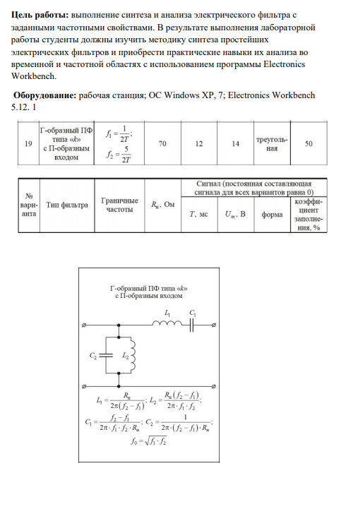 Лабораторная работа 2: Электрические фильтры вариант 19