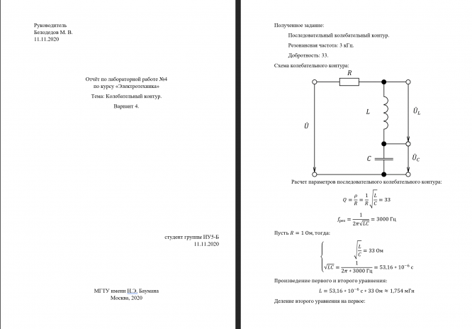 Для студентов МГТУ им. Н.Э.Баумана по предмету Электротехника (ЭлТех)ЛР №4 - Колебательный контурЛР №4 - Колебательный контур