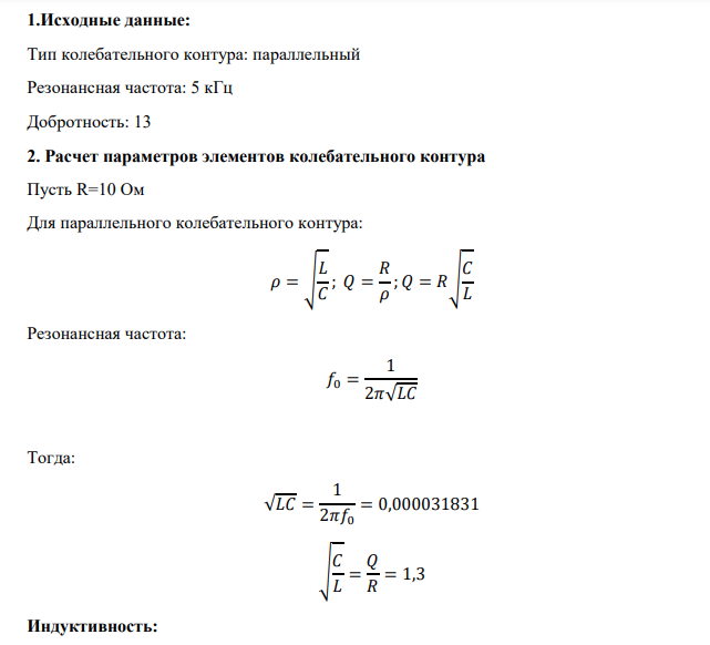 Тип колебательного контура: параллельный Резонансная частота: 5 кГц Добротность: 13