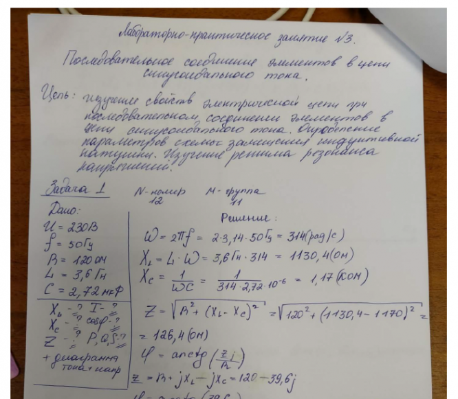 Лабораторная работа 3: Последовательное соединение в цепи синусоидального тока