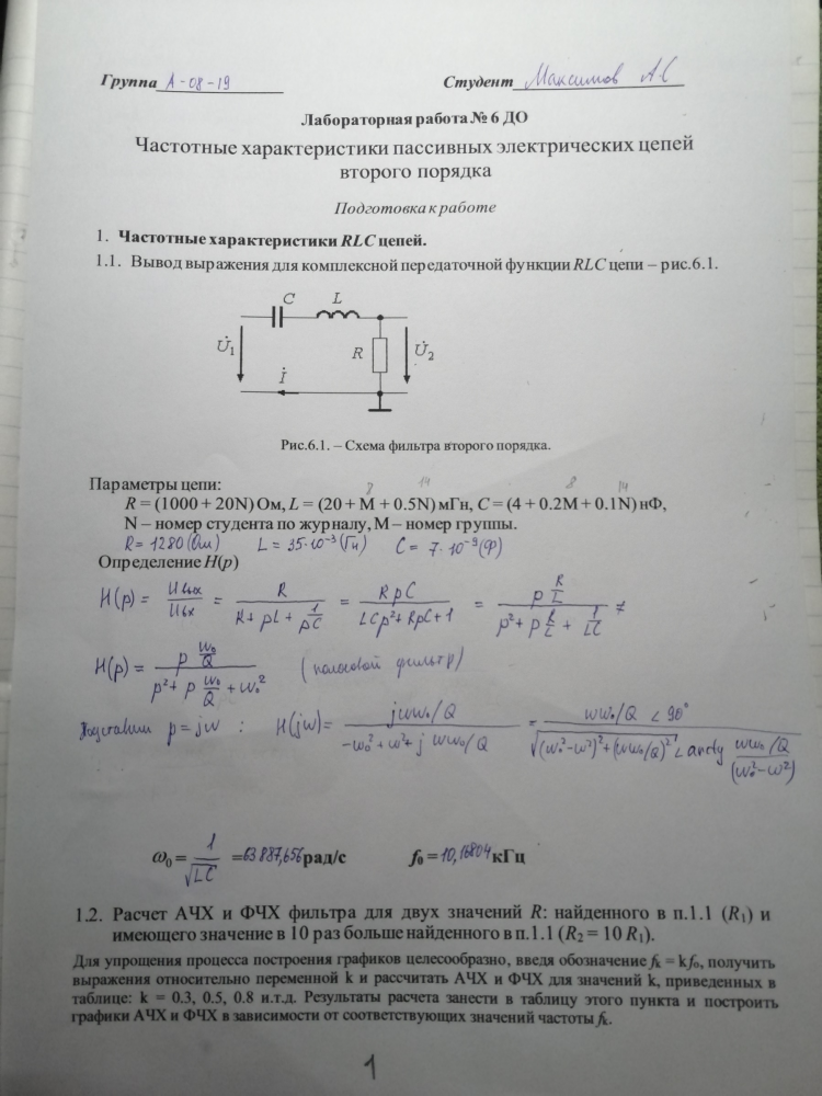 Лабораторная работа 6: Частотные характеристики пассивных электрических цепей второго порядка