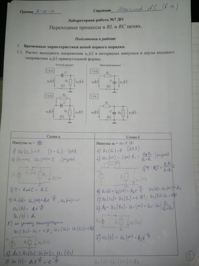 Лабораторная работа 7: Переходные процессы в RC и RL цепях вариант 14