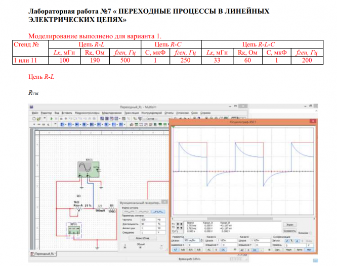 Лабораторная работа 1, 2, 3, 4: Переходные процессы в линейных электрических цепях