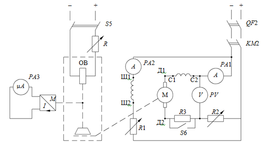 Рис. 1. Электрическая схема для проведения испытаний двигателя постоянного тока